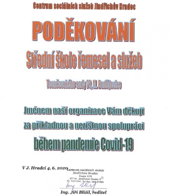 Domov seniorů Dačice je jedno ze čtrnácti pracovišť, které máme smluvně zajištěno pro praxe oboru Ošetřovatel. Během pandemie domov využil naši nabídnutou pomoc. Rádi jsme pomohli. :)