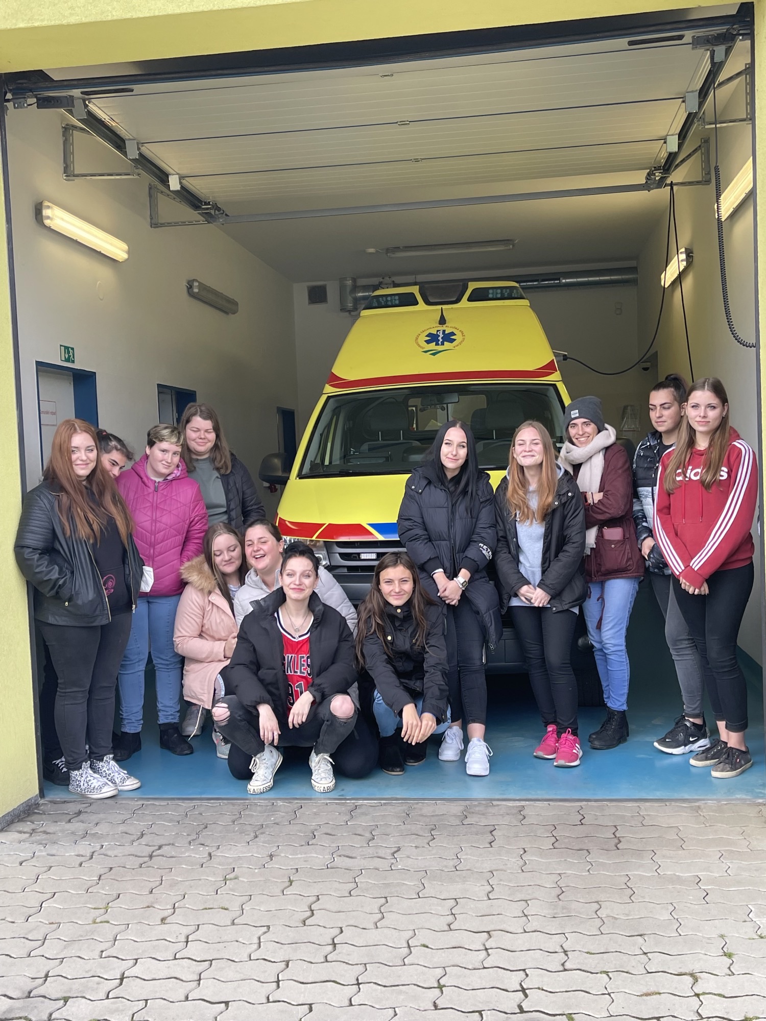Exkurze do prostor základny budějovické záchranky byla pro budoucí ošetřovatelky rozhodně přínosem. Dívky se trefily do časové mezery, kdy naštěstí nebyl výjezd. Omrkly zevnitř i sanitku. „Záchranáři jim ukázali, co nosí v kufrech a vysvětlili, proč,“ zmínila učitelka Marta Jenerálová. Budoucí zdravotnice si mohly kufry potěžkat. Dále si zkusily přístroj na měření životních funkcí. Ani ten není lehký, přičemž je nezbytnou součástí každé cesty až k pacientovi. „Žákyně si rovněž mohly testnout vakuovou dlahu i celou desku – nosítka,“ pokračovala ve výčtu kantorka. Holky pak samozřejmě zajímaly zkušenosti z praxe. Záchranáři se dostávají k ošklivě vypadajícím událostem, často mají co do činění s alkoholiky i narkomany. Zvládnou též porod v terénu. Vyprávění bylo rozhodně zajímavé.