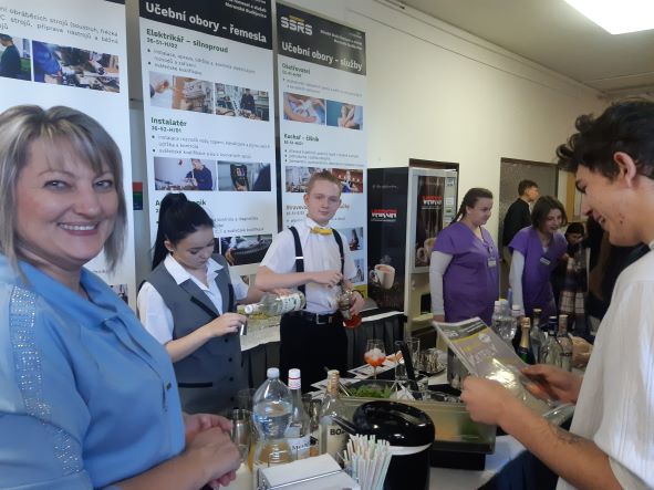 SŠŘS MB prezentovali učitelé odborného výcviku, žáci maturitního oboru Mechanik-seřizovač, učebního oboru Kuchař-číšník a Ošetřovatel. Zájemcům jsme názorně předvedli trenažér svařování, 3D tiskárnu, přípravu nápojů i některé ošetřovatelské úkony, a to včetně záchrany kojence (samozřejmě na figuríně).