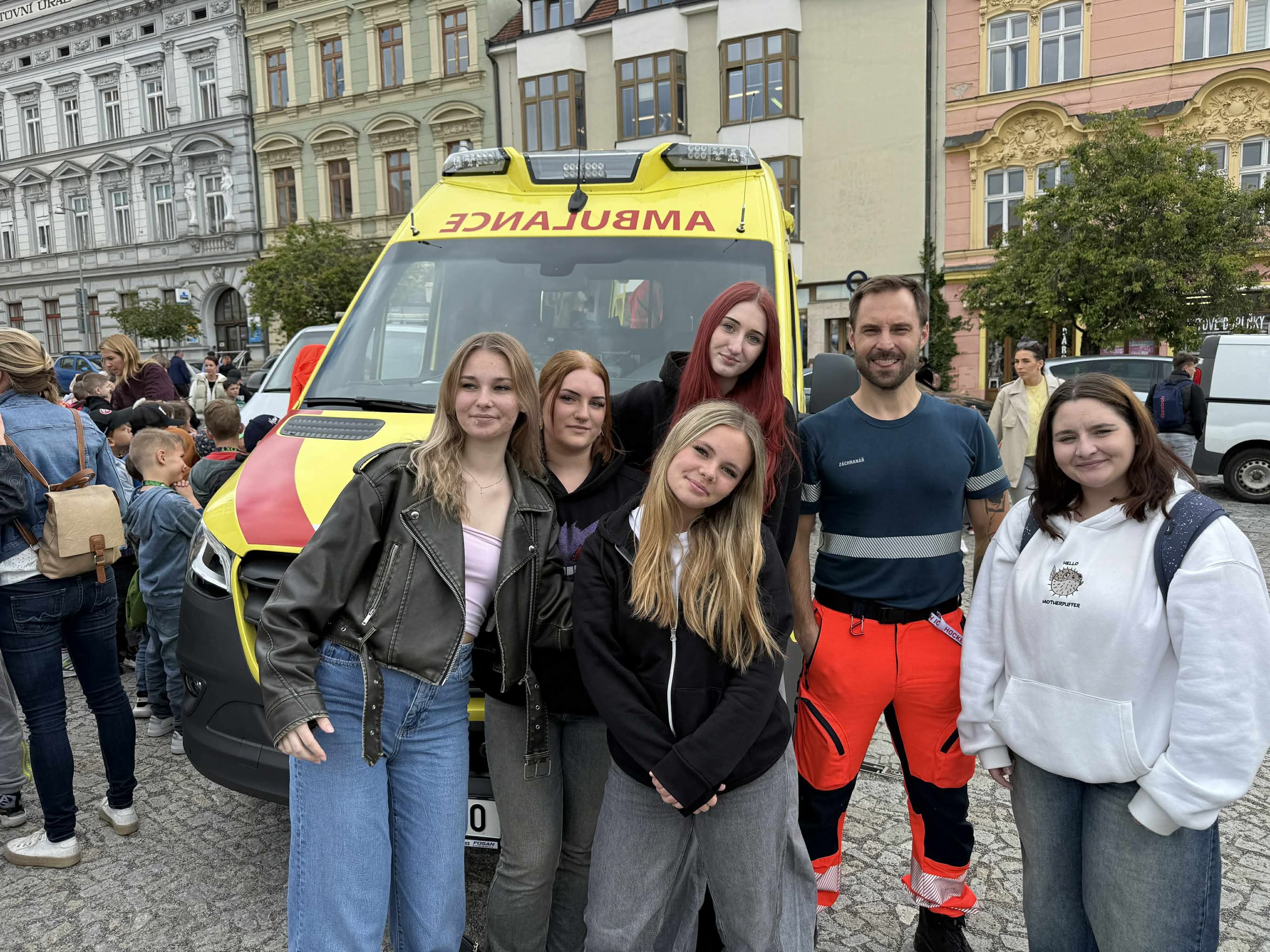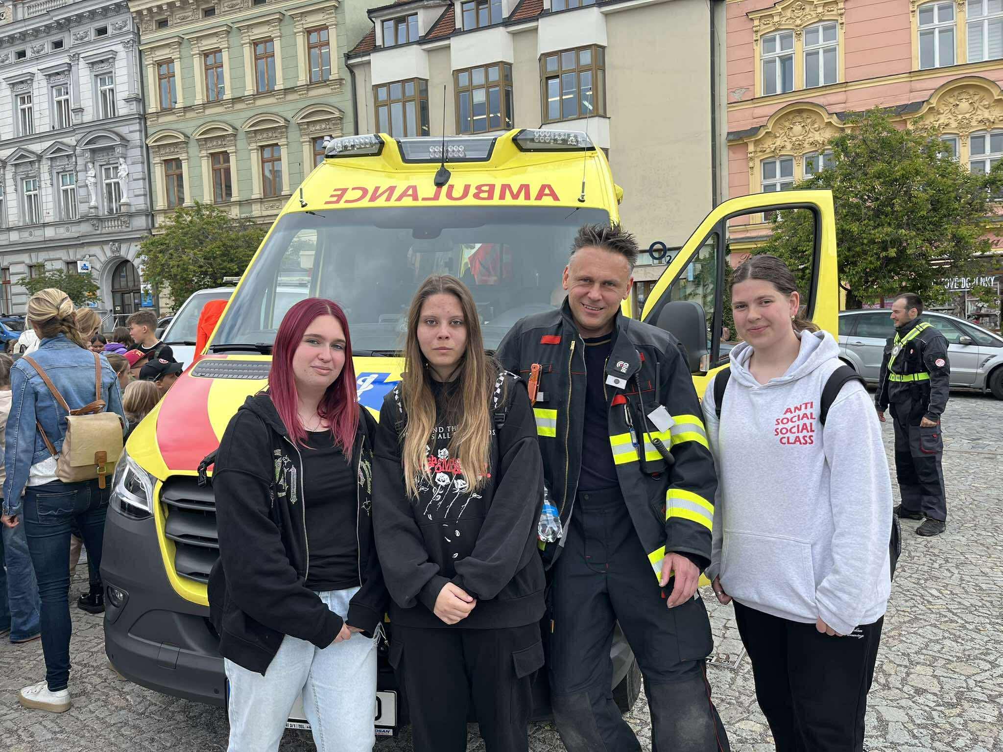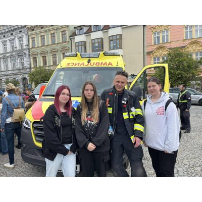 Naši žáci si mohli zblízka prohlédnout sanitní a hasičský vůz, techniku Policie ČR a také si vyzkoušeli poskytování první pomoci na připravených stanovištích.