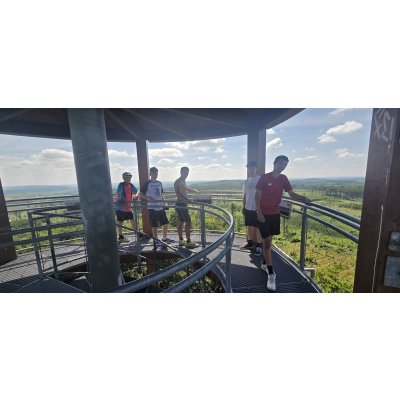 Cestou nechyběla zastávka na zasloužené mléčné občerstvení a výšlap na rozhlednu Mařenka, odkud se nám otevřel úchvatný výhled do okolí.