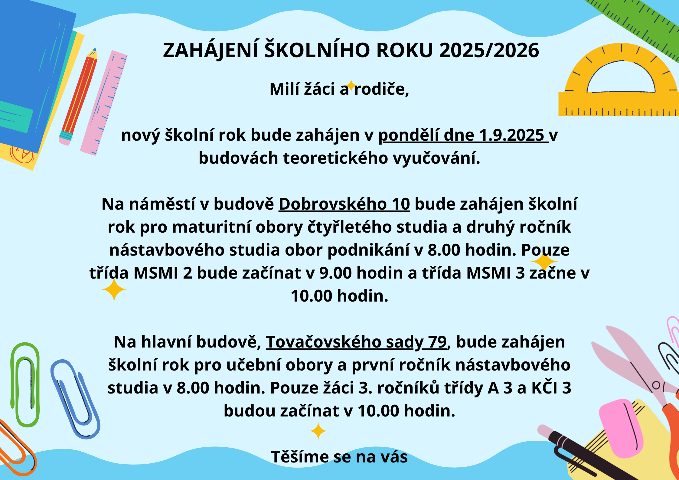 Důležité informace k zahájení školního roku!