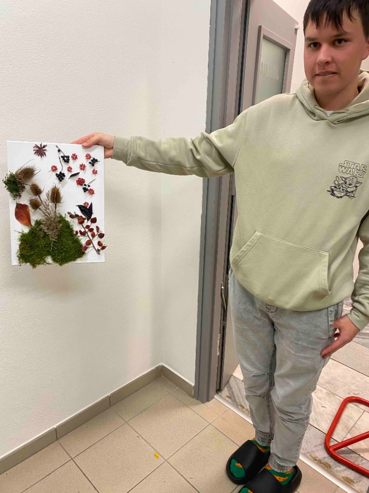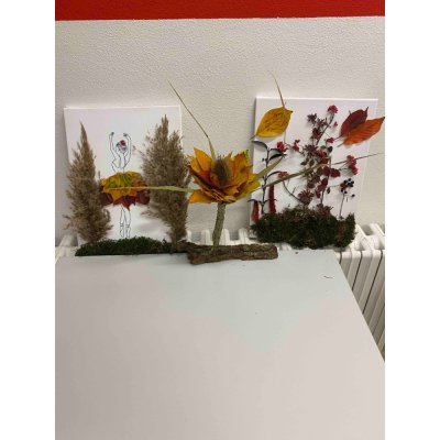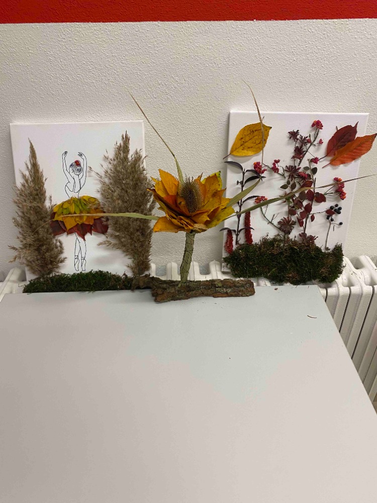 Použili nejen klasické výtvarné potřeby, ale i přírodní materiály nasbírané v okolí – kaštany, barevné listí, větvičky, mech i kůru.