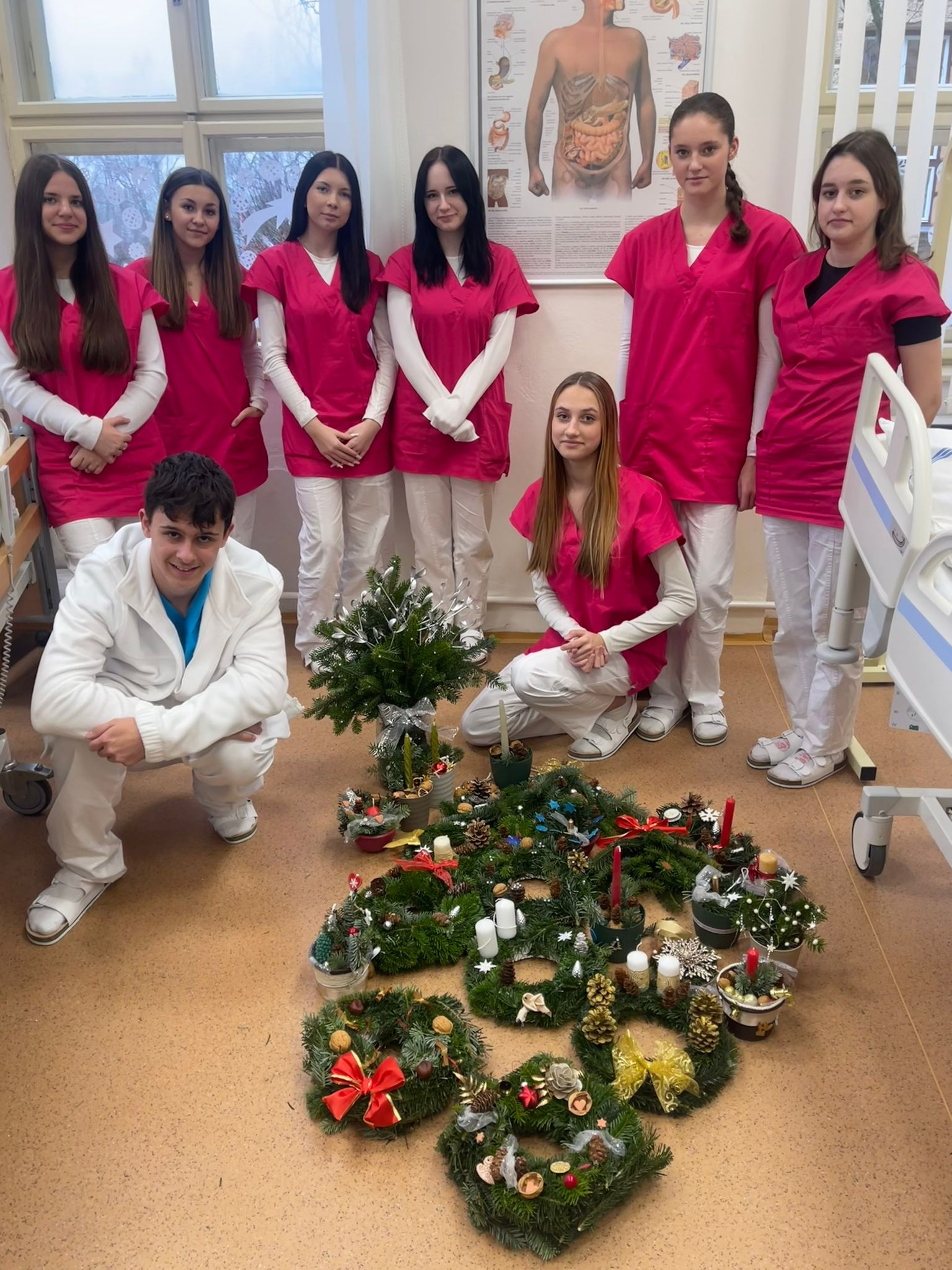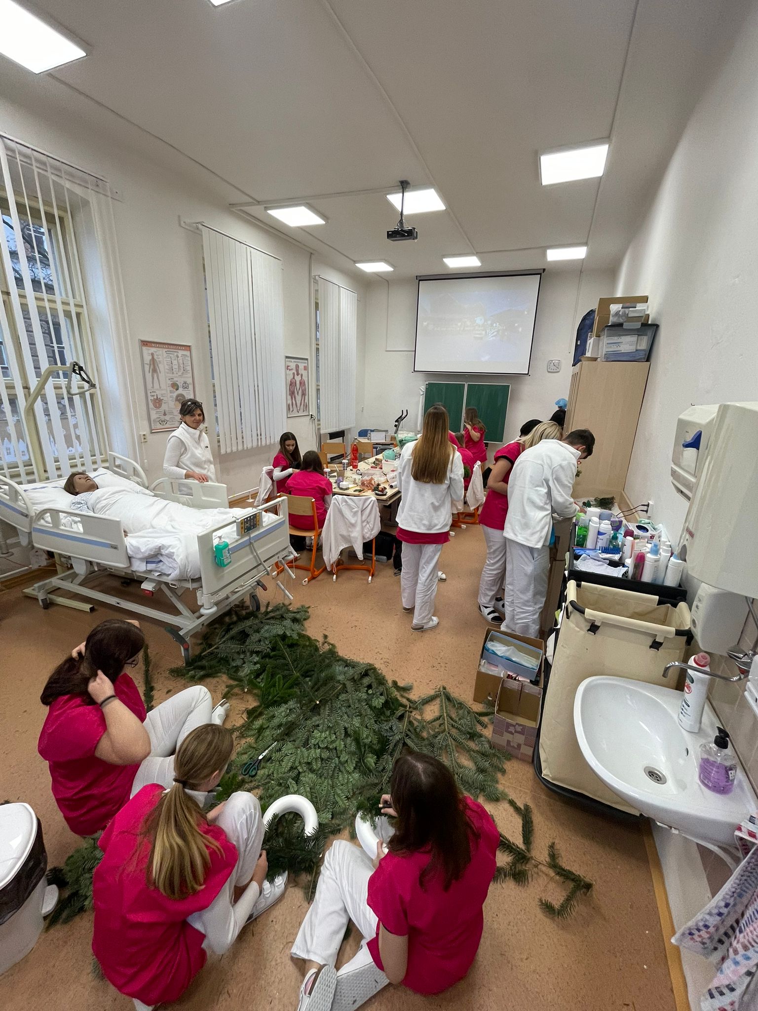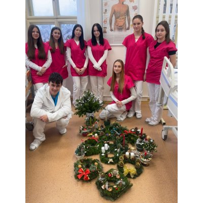 Žáci 1. ročníku oboru Ošetřovatel ukázali, že mají nejen pečující srdce, ale i velký cit pro estetiku a týmovou spolupráci. Pod jejich rukama vznikla nádherná vánoční výzdoba školy, která nám všem zpříjemňuje prosincové dny a navozuje tu pravou sváteční atmosféru.