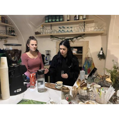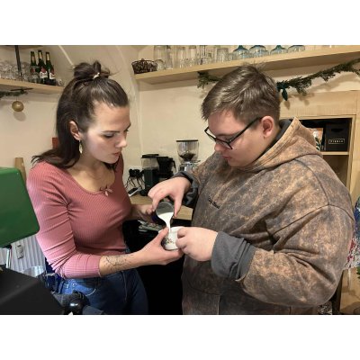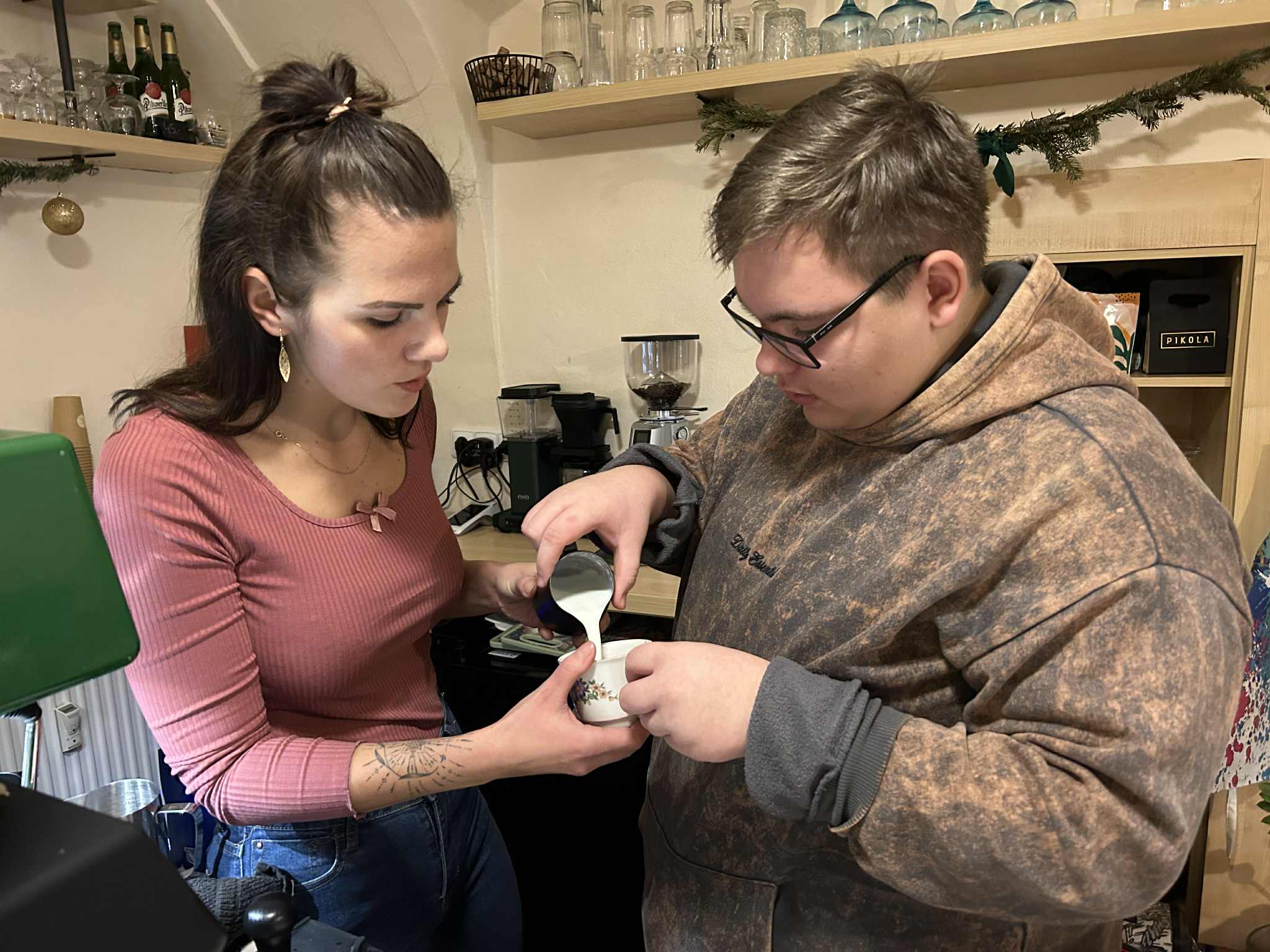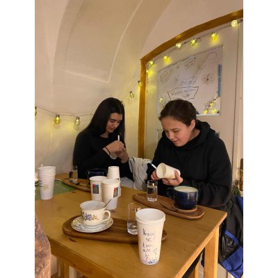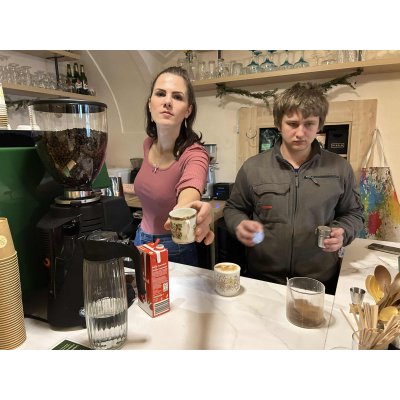 Třída KČ 2 se vydala na exkurzi do Joy’s RC kavárny v židovské čtvrti v Třebíči – a rozhodně to nebyla jen obyčejná návštěva. Celý prostor voněl kávou, mléčnou pěnou a novými zážitky