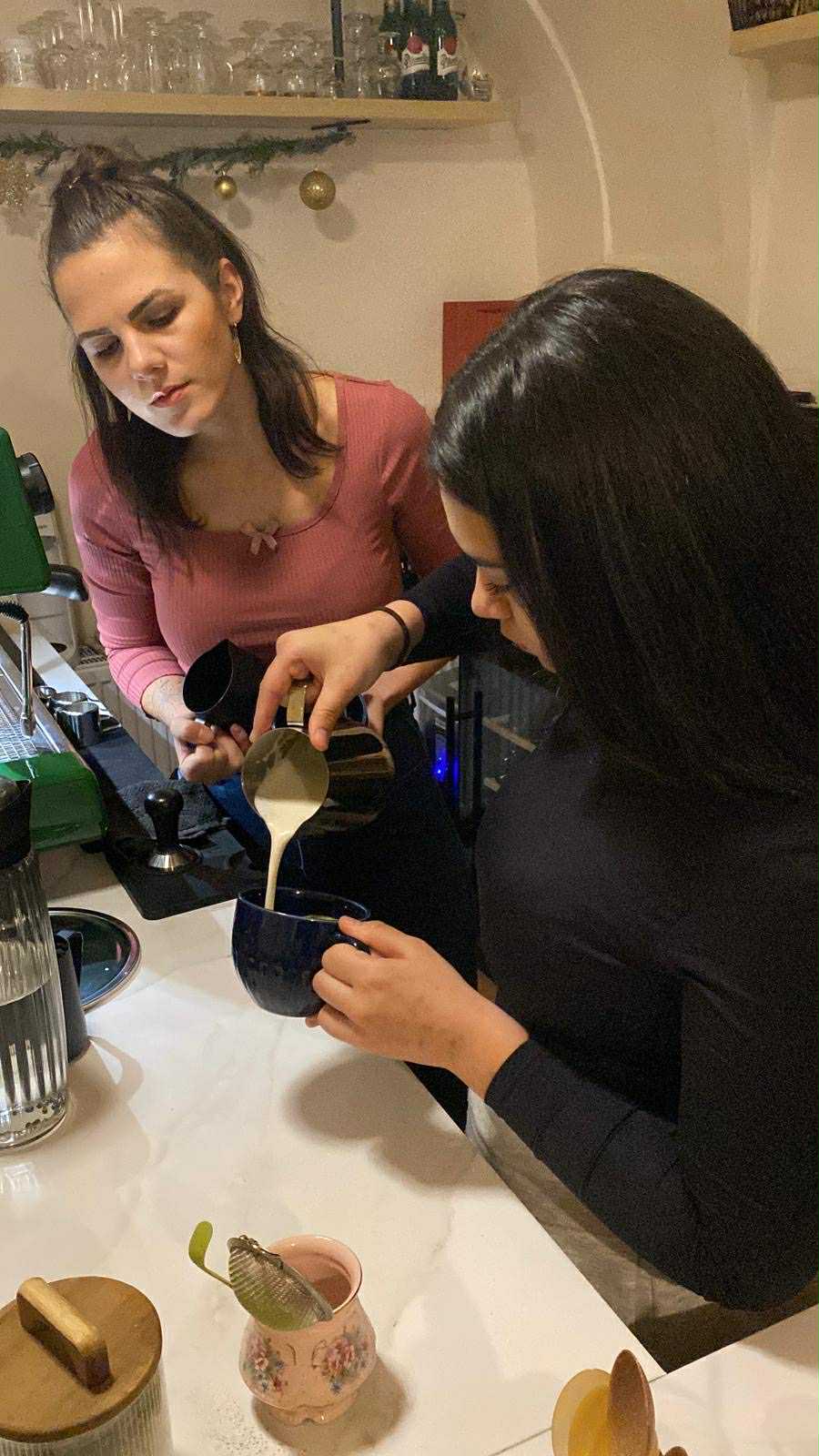 Žáci si vyzkoušeli přípravu cappuccina s latte art , chai latte i levandulové matcha latte . Nechybělo ani popisování kelímků na kávu – protože i kelímek má co vyprávět, nejen káva uvnitř.