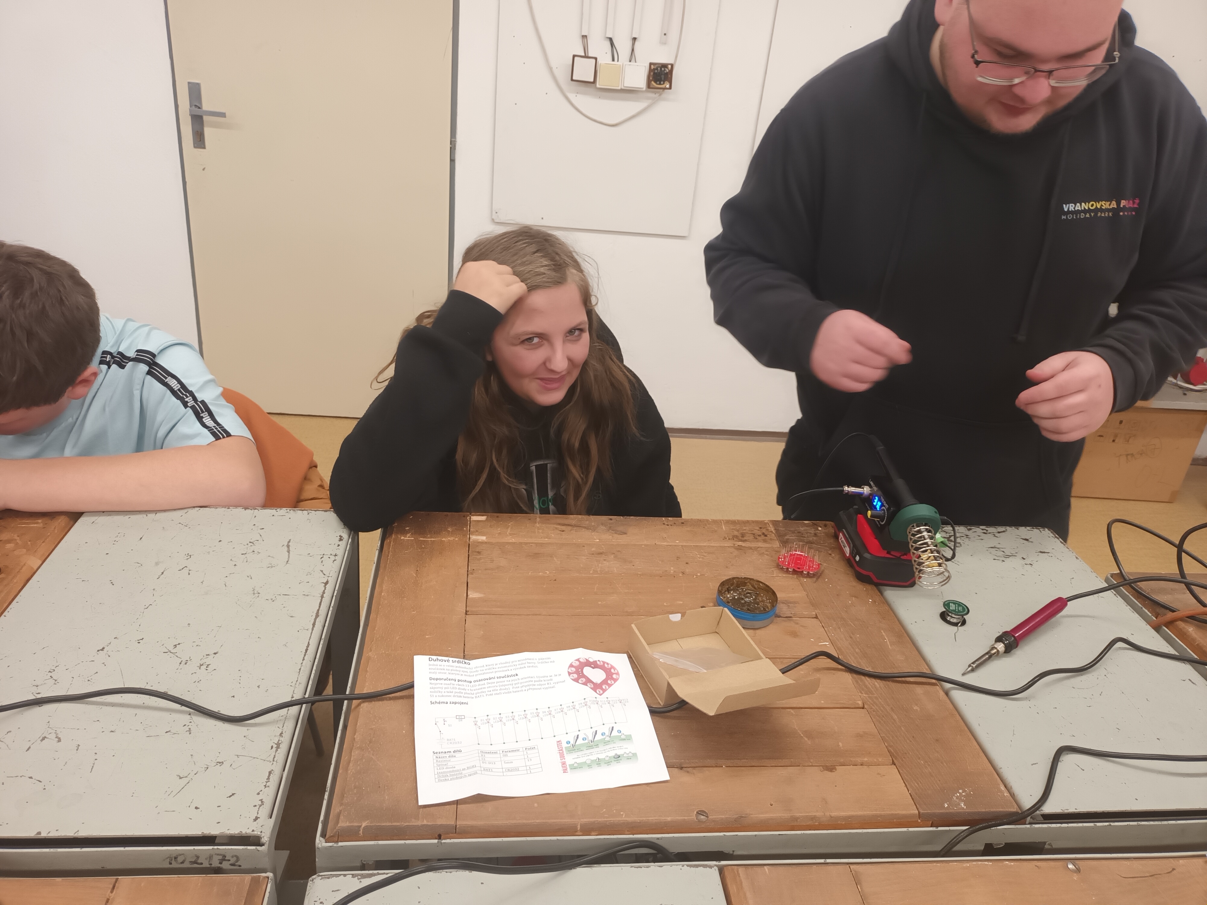 Úkolem bylo složit ze součástek blikací valentýnské srdíčko – a děti se do práce pustily s chutí, nadšením i velkou dávkou trpělivosti.