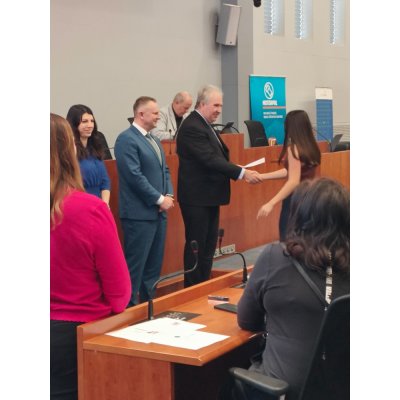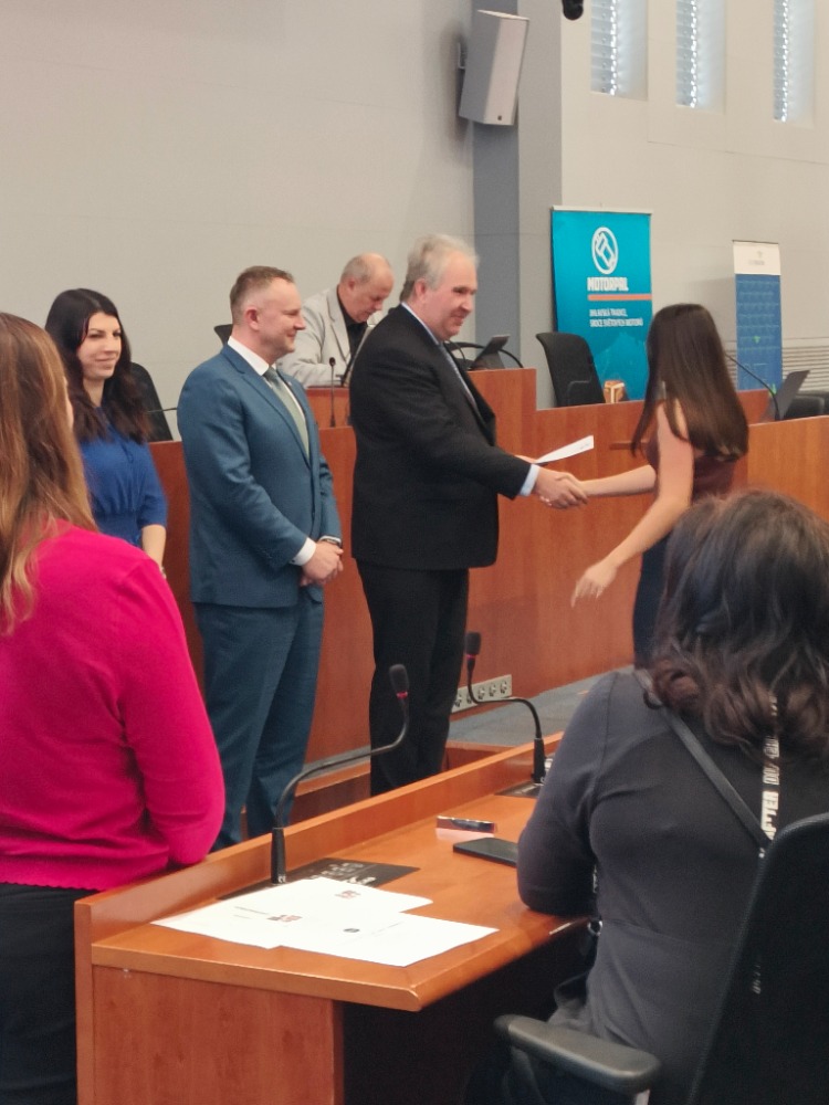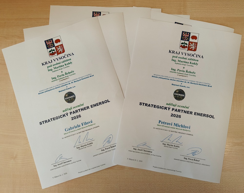 Žáci maturitních oborů Mechanik seřizovač a Mechanik instalatérských a elektrotechnických zařízení Petr Michl, Bronislav Němec a Matěj Koukal spolu se žákyní oboru Ošetřovatelství Gabrielou Filovou se zúčastnili krajské konference ENERSOL.