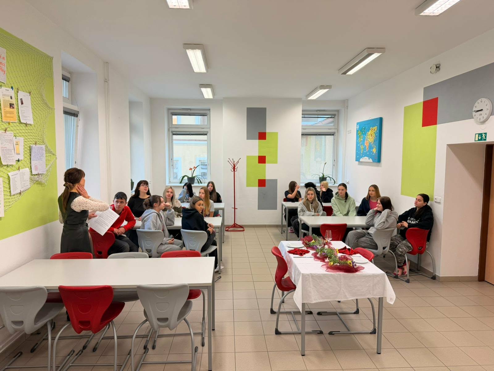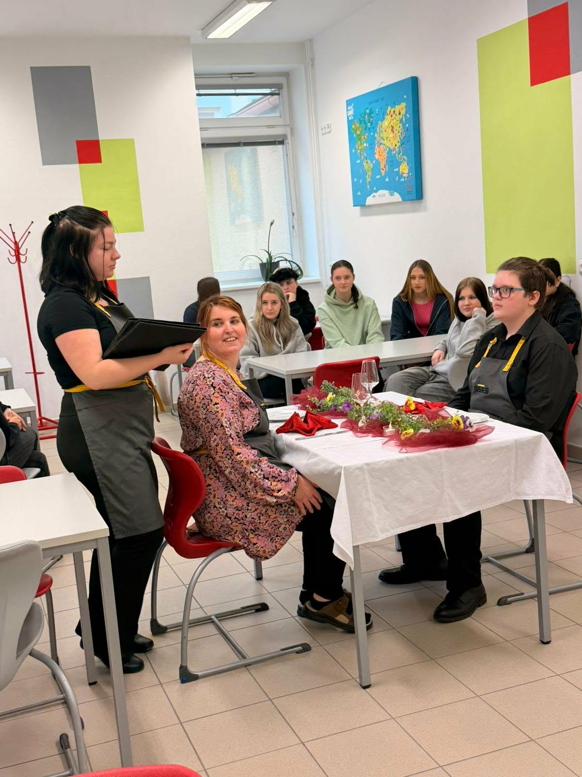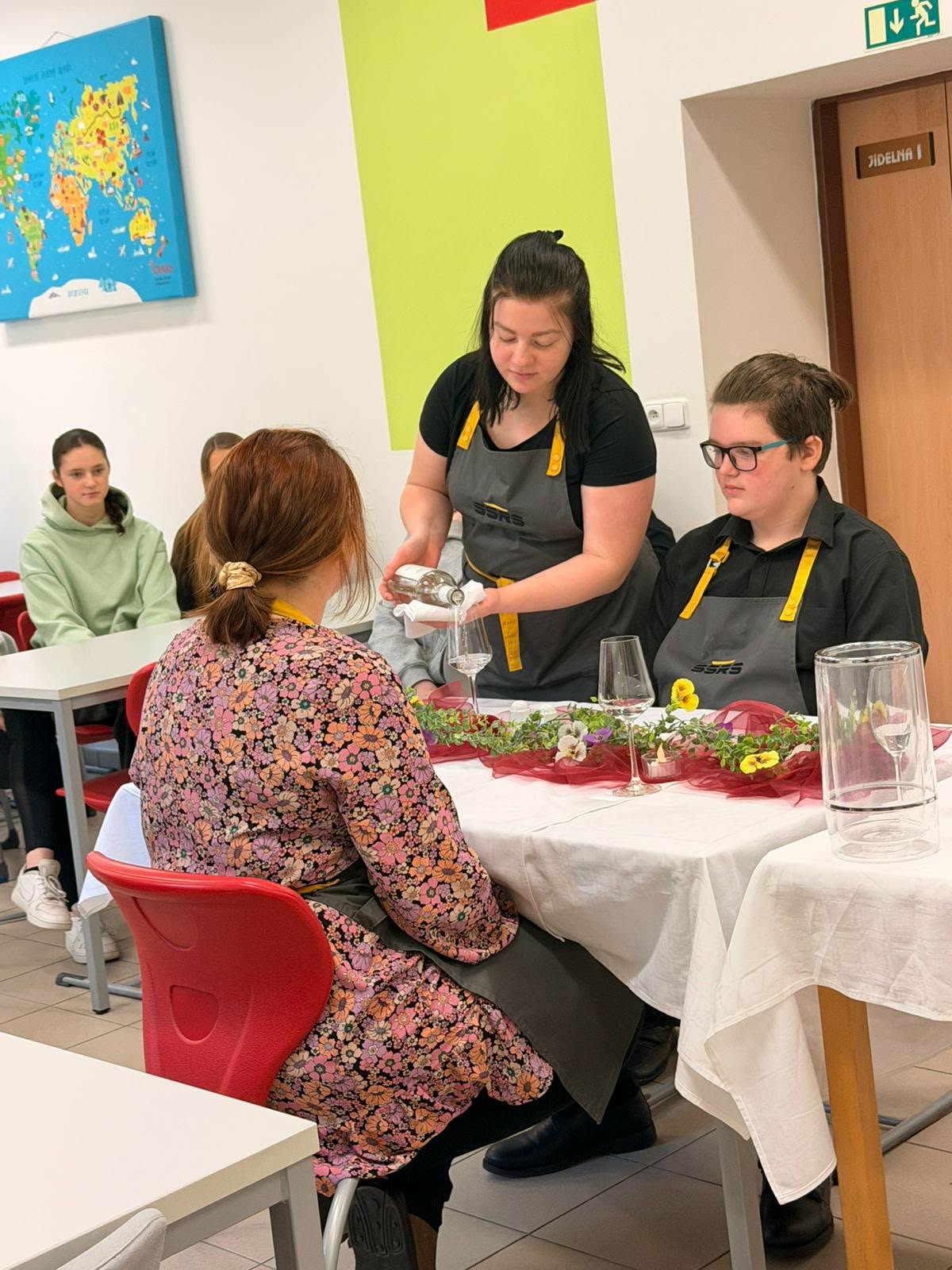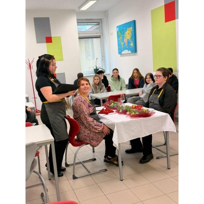 Žáci z oboru kuchař-číšník si navíc připravili krátké scénky správného i nesprávného stolování, a to jak ze strany zákazníků, tak i personálu. Díky praktickým ukázkám jsme si mohli na konkrétních situacích ukázat, jak by mělo správné stolování a chování u stolu vypadat.