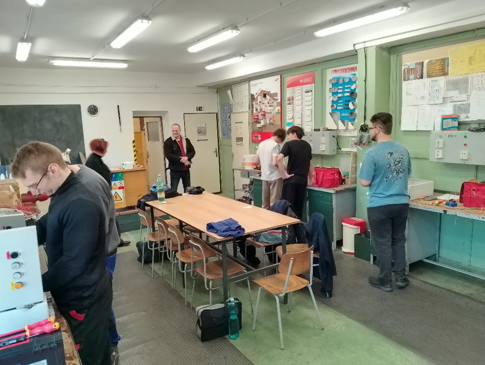 Hosté se aktivně zapojili do výuky v oborech mechanik seřizovač a elektrikář silnoproud. Vyzkoušeli si práci v dílnách a porovnali své praktické dovednosti s našimi žáky.
