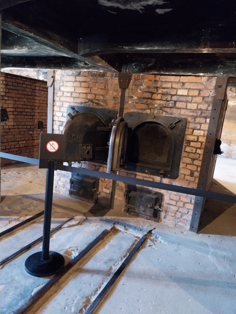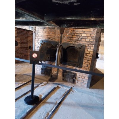 Žáci navštívili také plynovou komoru a viděli pece, ve kterých byli vězni spalováni. Následně jsme se přesunuli do Březinky, kde si prohlédli nástupiště, na němž probíhala selekce příchozích vězňů, a dřevěné baráky, kde přespávali muži určení k práci v táboře.