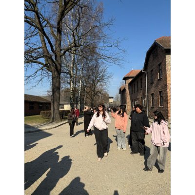S žáky naší školy jsme navštívili koncentrační tábor Osvětim–Březinka. Během exkurze si prošli část Osvětim I, kde na vlastní oči viděli, jakých hrůz se nacisté na vězních dopouštěli. Silným momentem byly vitríny s vlasy, botami a kufry zavražděných lidí, stejně jako dobové fotografie, dopisy a další dokumenty.