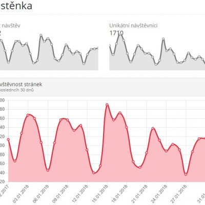 Zjistit víceNové webové stránky spuštěné od 1. 1. 2018 navštívilo za měsíc leden 1710 návštěvníků s 3532 návštěvami. Ať se Vám líbí :)